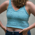 Dieses ist ein einfaches und schönes Sommertop mit meliertem Effekt. Es wird mit zwei verschiedenen Fäden, die zusammengehalten werden, von unten nach oben gestrickt. Das Vorder- und das Rückenteil werden genau gleich gestrickt und die Schultern werden für einen nahtlosen Übergang mit Maschenstichen abgekettet. Zum Schluss werden entlang der Armausschnitte und des Halsausschnittes M aufgenommen, um einen I-Cordrand zu stricken. Die Größe wählen, die dem eigenen Brustumfang am nächsten liegt.